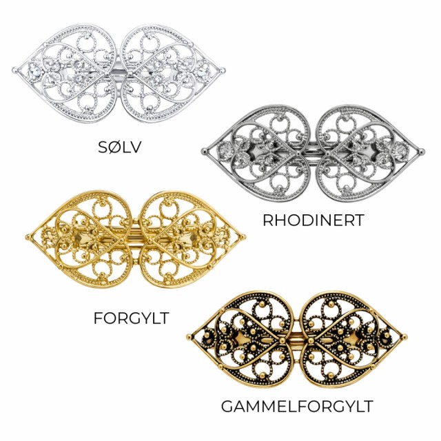 Hårspenne filigran, forgylt Nydelig filigranhårspenne i gullfinish, designet for å komplettere festdrakt og bunad. Den vil garantert fullføre helheten. PrisNOK299,00 inkl. mva. På lager Kjøp Ønskeliste Del dette Produktinfo Mål: 6 x 3 cm Overflate: Forgylt 100% nikkelfritt metall