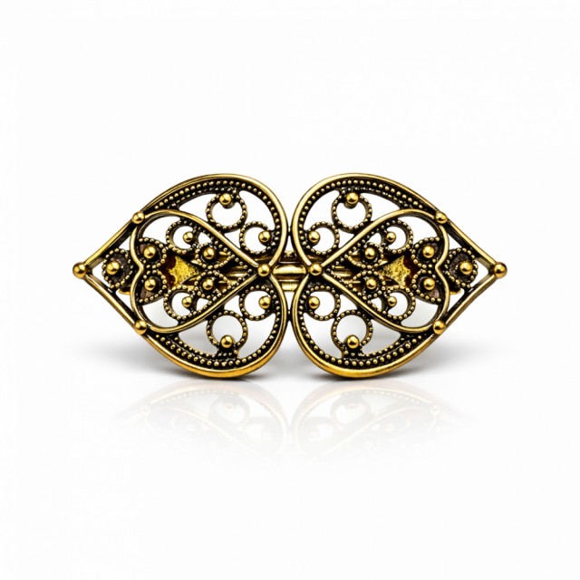 Hårspenne filigran, gammelforgylt Nydelig filigranhårspenne i gammeltforgylt finish, designet for å komplettere festdrakt og bunad. Den vil garantert fullføre helheten. PrisNOK299,00 inkl. mva. På lager Kjøp Ønskeliste Del dette Produktinfo Mål: 6 x 3 cm Overflate: Forsølvet 100% nikkelfritt metall Passer til festdrakt og bunad, som f.eks Løken bunad.