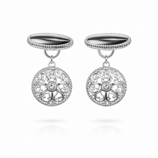Gjør festdrakten / bunaden komplett med søljer og annet tilbehør. I dette settet får du en halssølje, en brystsølje, et par ørepynt, et trekkekjede og et par mansjettknapper.