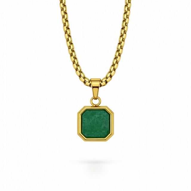 Leo halssmykke Dette gullfargede kjedet har et elegant, åttekantet anheng innrammet i polert gullfinish, med en grønn aventurin som gir et eksklusivt og karaktersterkt uttrykk. PrisNOK445,00 inkl. mva. På lager Kjøp Ønskeliste Del dette Produktinfo Materiale: Rustfritt stål Farger: Gull Sten: Grønn aventurin Lengde på kjedet: 50 cm Bredde på kjede: 2,8 mm Mål på anheng: 15x15 mm Lås: Carabin