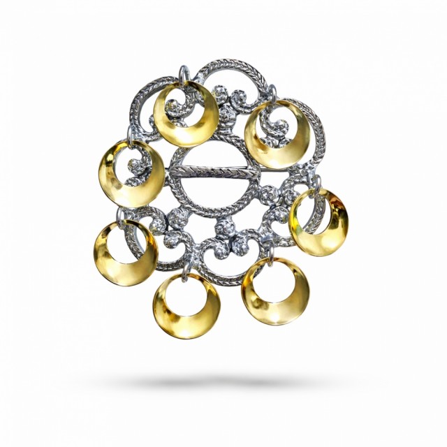 Ella - Halssølje Gjør festdrakten / bunaden komplett med tilbehør. Søljen passer til alle festdrakter. Den kan brukes alene eller over en større brystsølje. PrisNOK329,00 inkl. mva. På lager Kjøp Ønskeliste Del dette Produktinfo Mål: Diameter: 3,6 cmMed heng: 4,2 cm- Produktet er forsølvet med rhodinert overflate og forgylte heng, nikkelfritt. Trengs ikke å pusses. (ikke sølv)