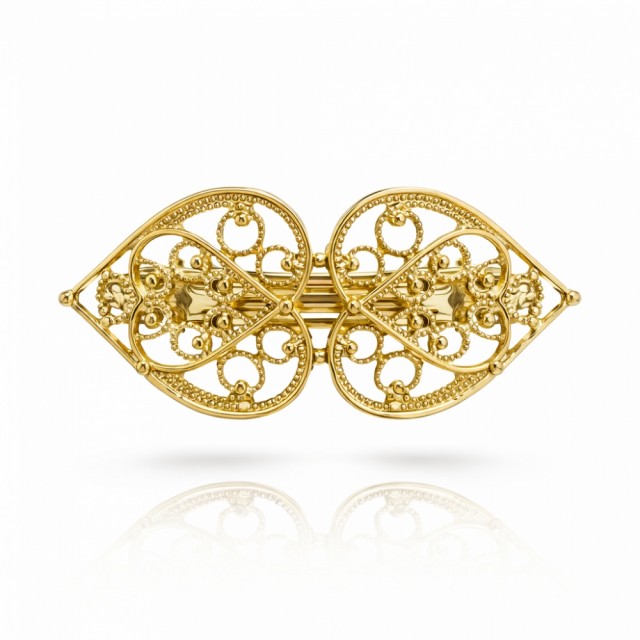 Hårspenne filigran, forgylt Nydelig filigranhårspenne i gullfinish, designet for å komplettere festdrakt og bunad. Den vil garantert fullføre helheten. PrisNOK299,00 inkl. mva. På lager Kjøp Ønskeliste Del dette Produktinfo Mål: 6 x 3 cm Overflate: Forgylt 100% nikkelfritt metall