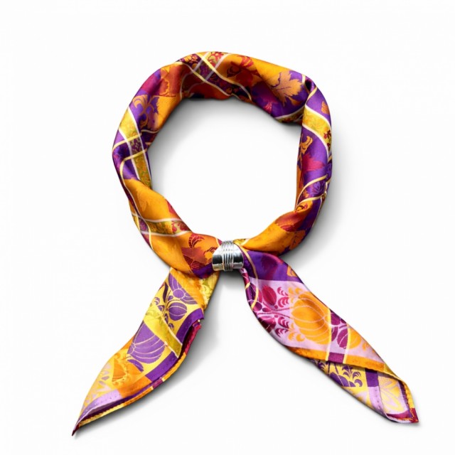 Denne unike skjerfspennen er håndlaget av en ekte sølvskje som er omsmidd og formet for å få et elegant, dobbelt båndpreg. Resultatet er et vakkert, tidløst smykke som gir skjerfet et eksklusivt preg og holder det perfekt på plass.