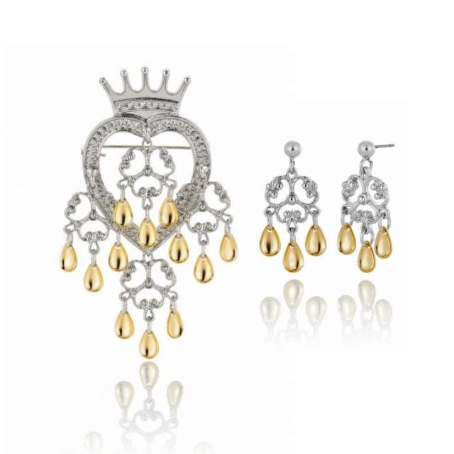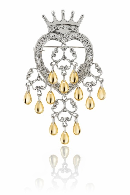 Selma brystsølje: rhodinert overflate og forgylte dråpeløv.