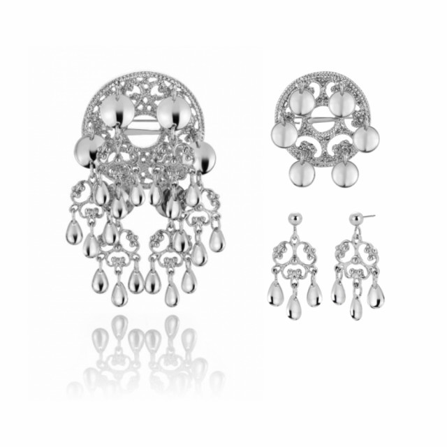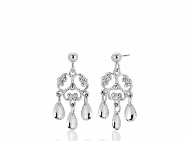 Medium sølje: rhodinert overflate, skåler og dråpeløv.