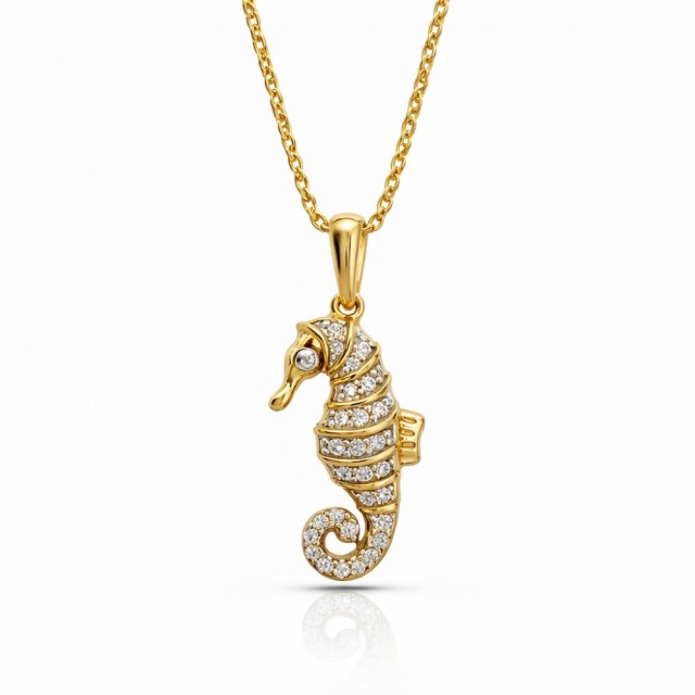 Sjøhest smykke, forgylt Den detaljerte utformingen fremhever sjøhestens karakteristiske silhuett, mens de glitrende steinene skaper liv og bevegelse i designet. Et smykke som fanger lyset – og oppmerksomheten. PrisNOK895,00 inkl. mva. På lager Kjøp Ønskeliste Del dette Produktinfo Materiale: 925 Sterling silver Mål på anheng u/oppheng: 19x11mmOverflate: ForgyltLengde: 42+3cm Levers i gave/oppbevaringseske